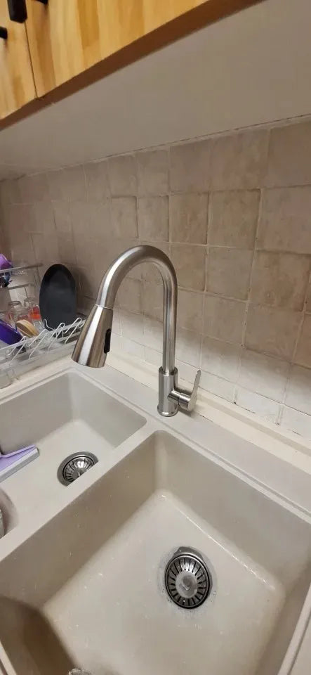 This pull-out faucet is a game changer. Easy to install, smooth operation, and fits my modern kitchen decor!
